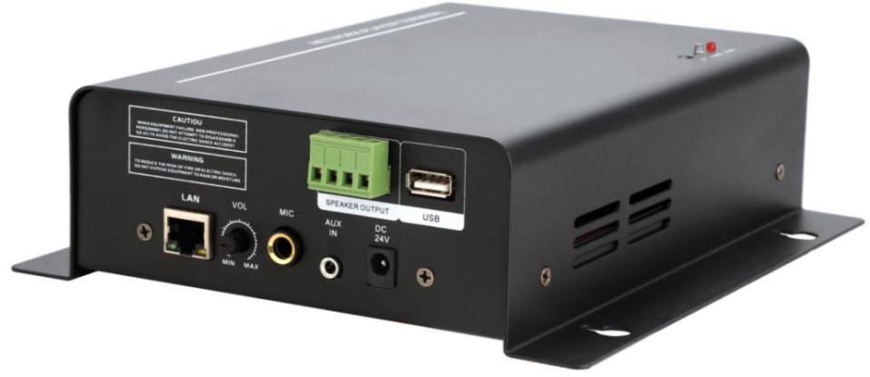 内置1个网口,1路话筒输入,1路线路输入,音量调节,实现本地扩音,