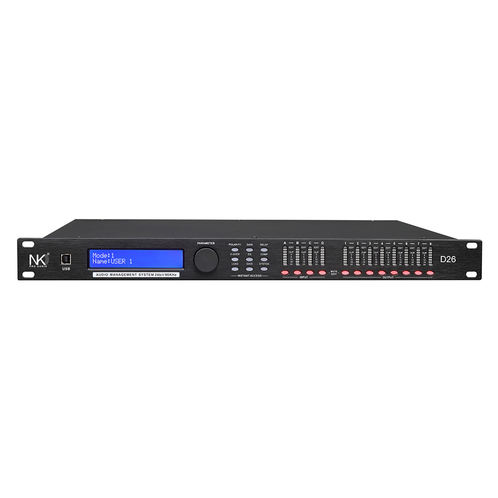4. 每路输入通道均设有增益、相位、延时、静音的功能及每路输出通道均设有增益、相位、分频、压限、静音、延时的功能;