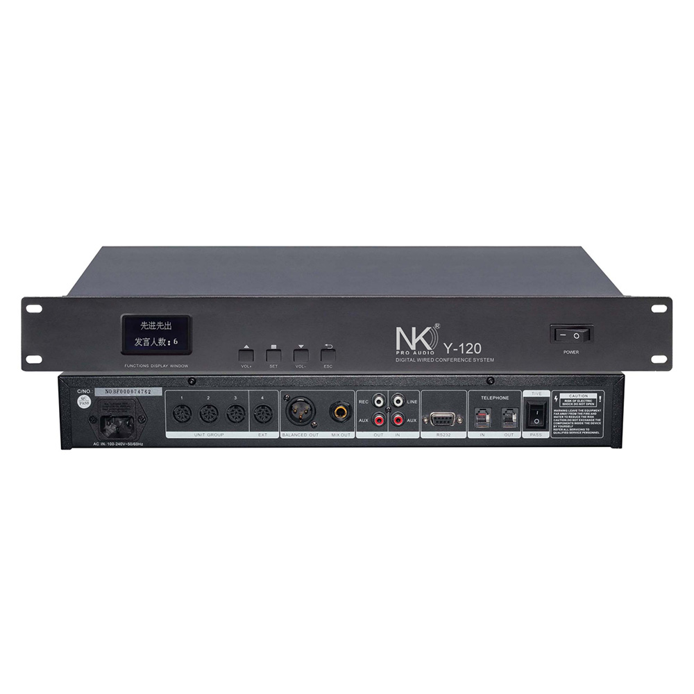 ·主机最少可连接60个会议话筒单元,具四路并联输出,每路可连接20个单元,可无限增加电源扩展或数据扩展;